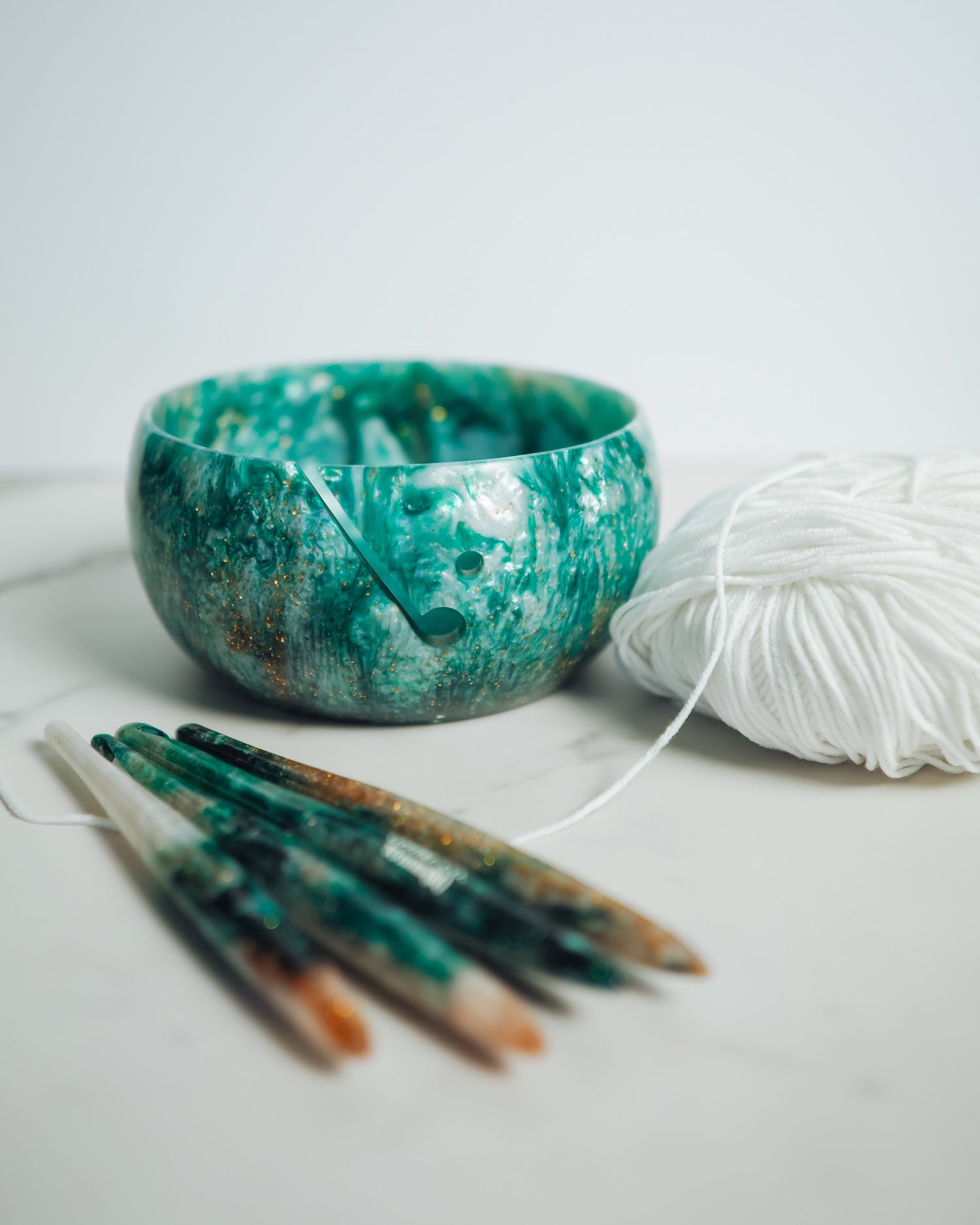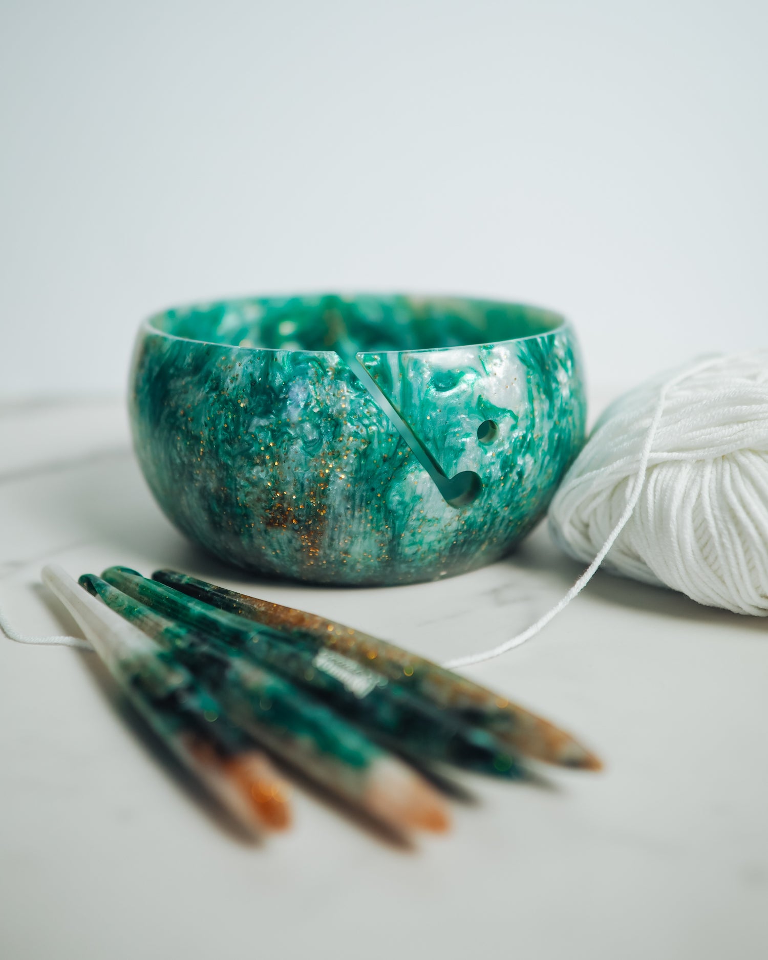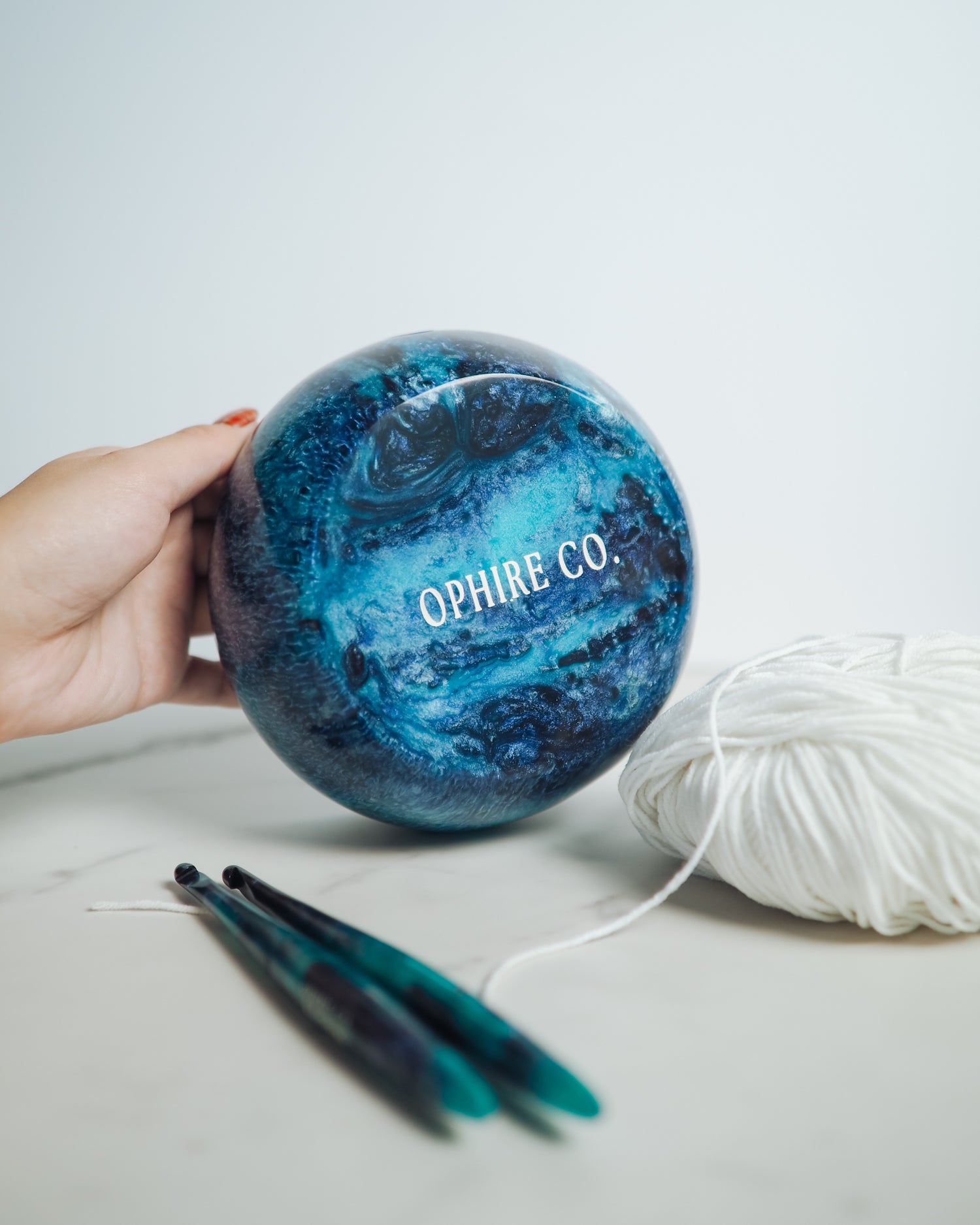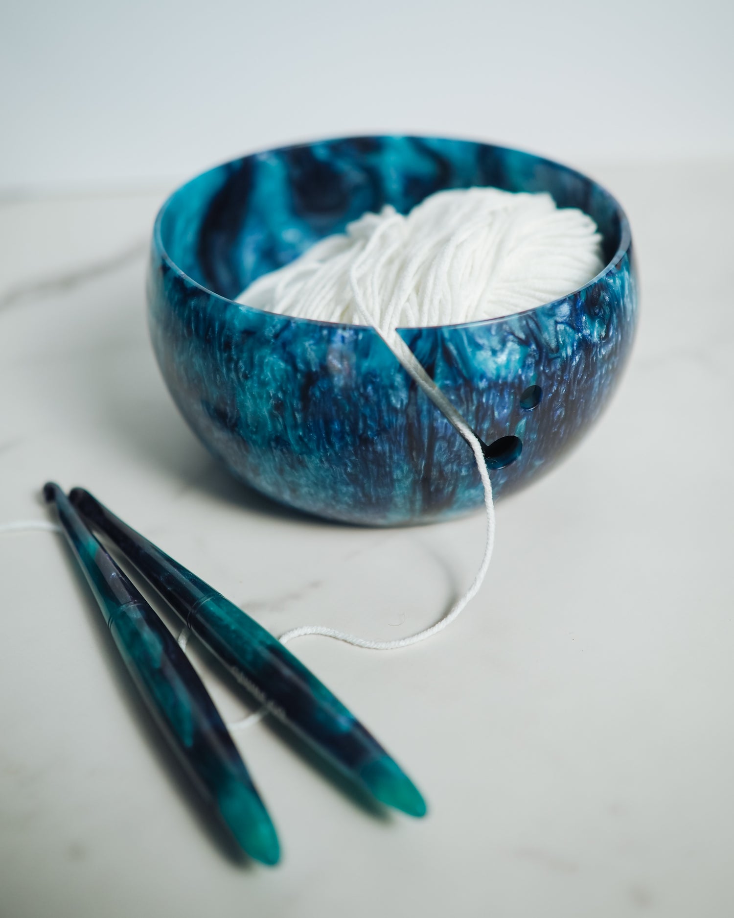 Each crochet hook is hand poured and carved one by one. Each color is hand spiraled which means each hook is completely unique!