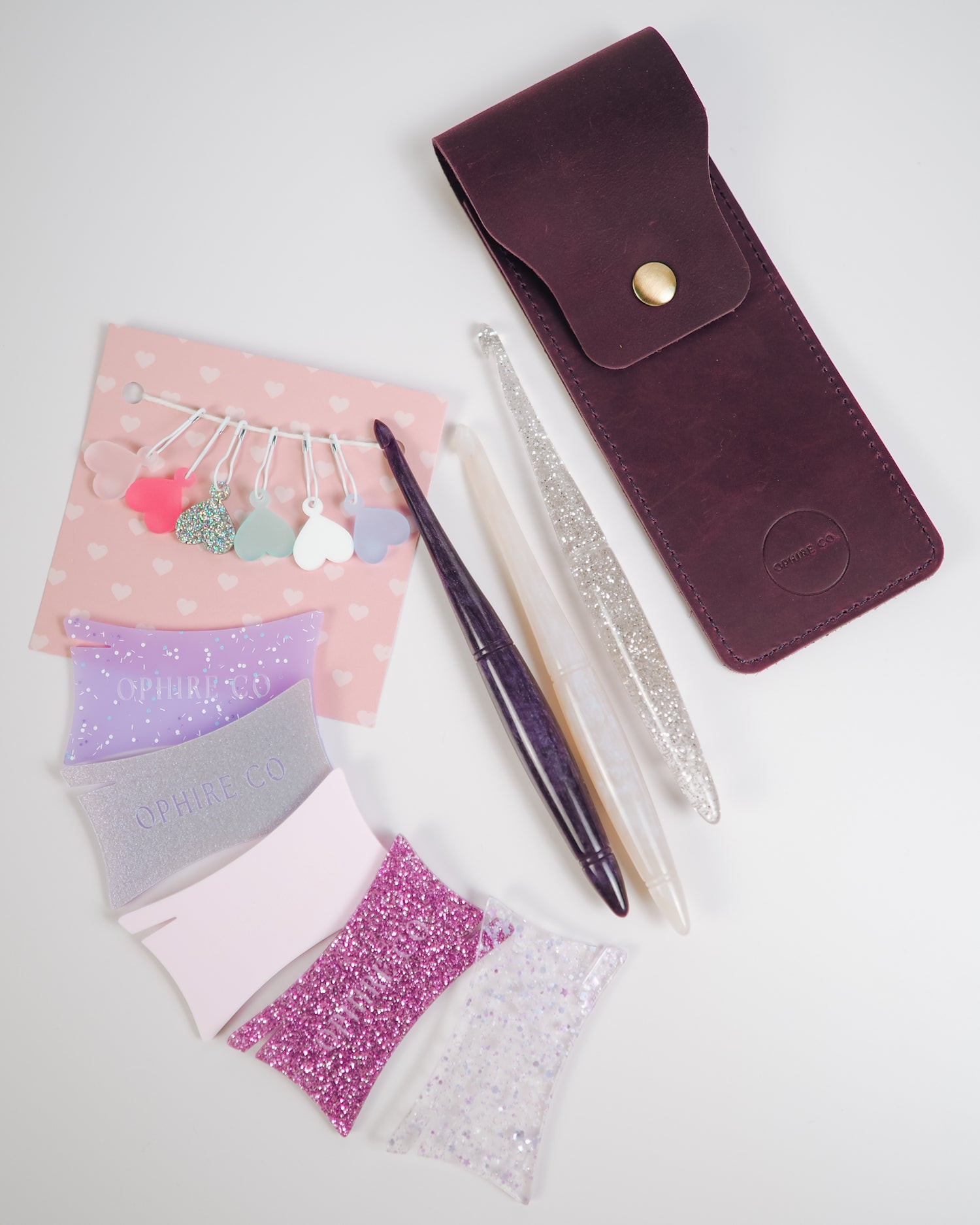 A slimmer ergonomic handle ensures comfortable stitching for both pen and knife holders, allowing unhindered movement. The hook features a shorter shaft which allows for better control while working stitches.