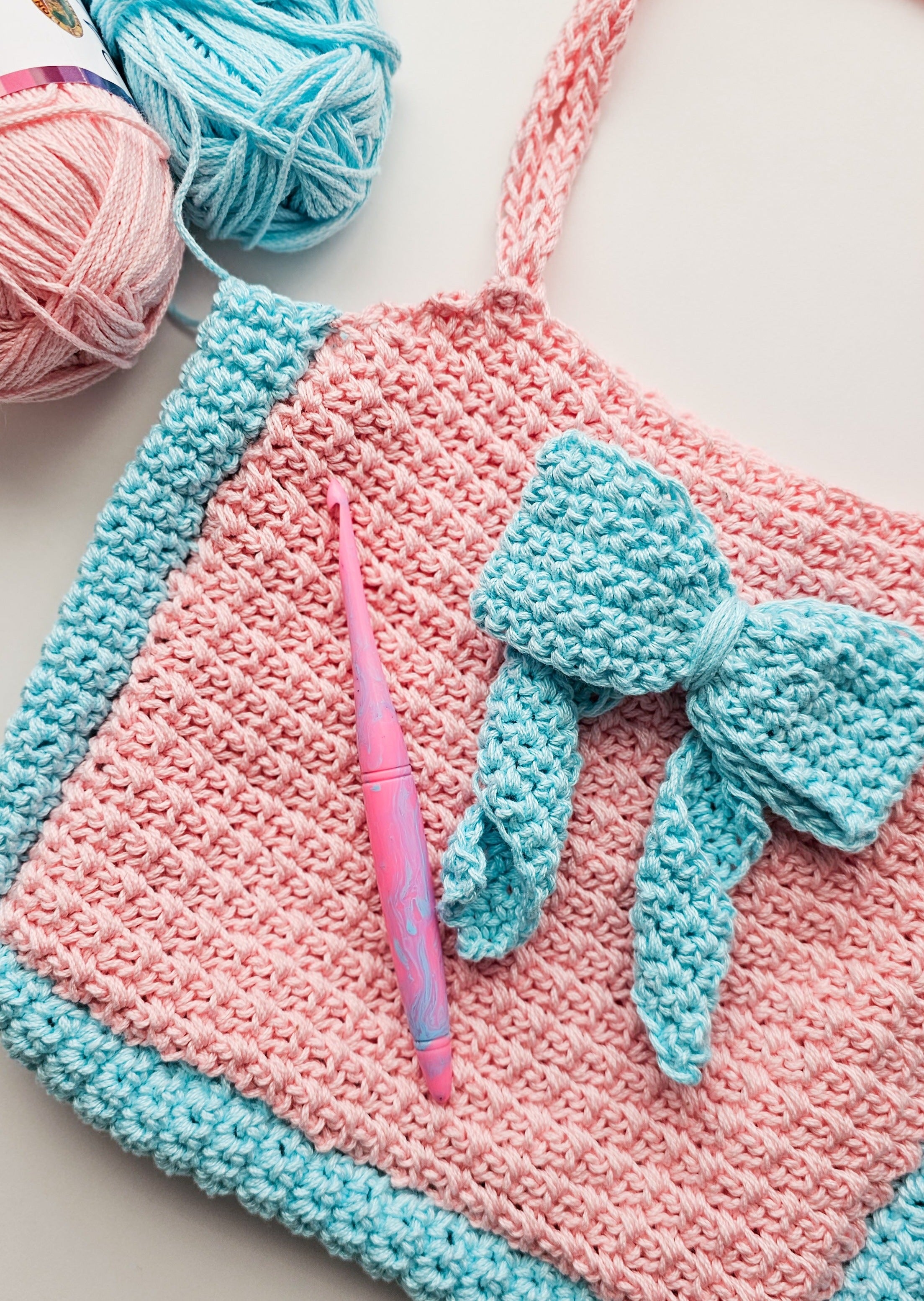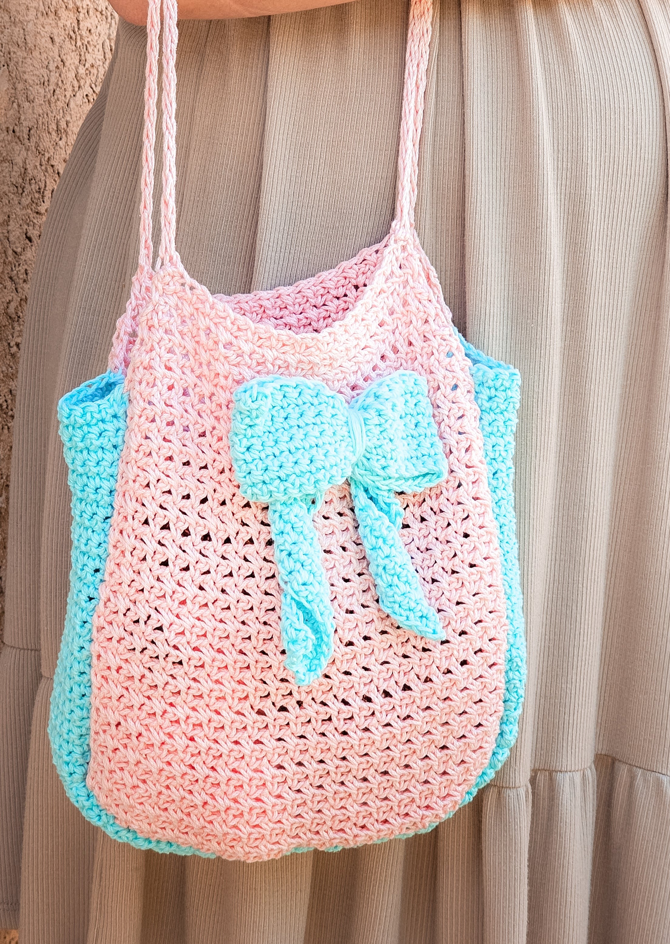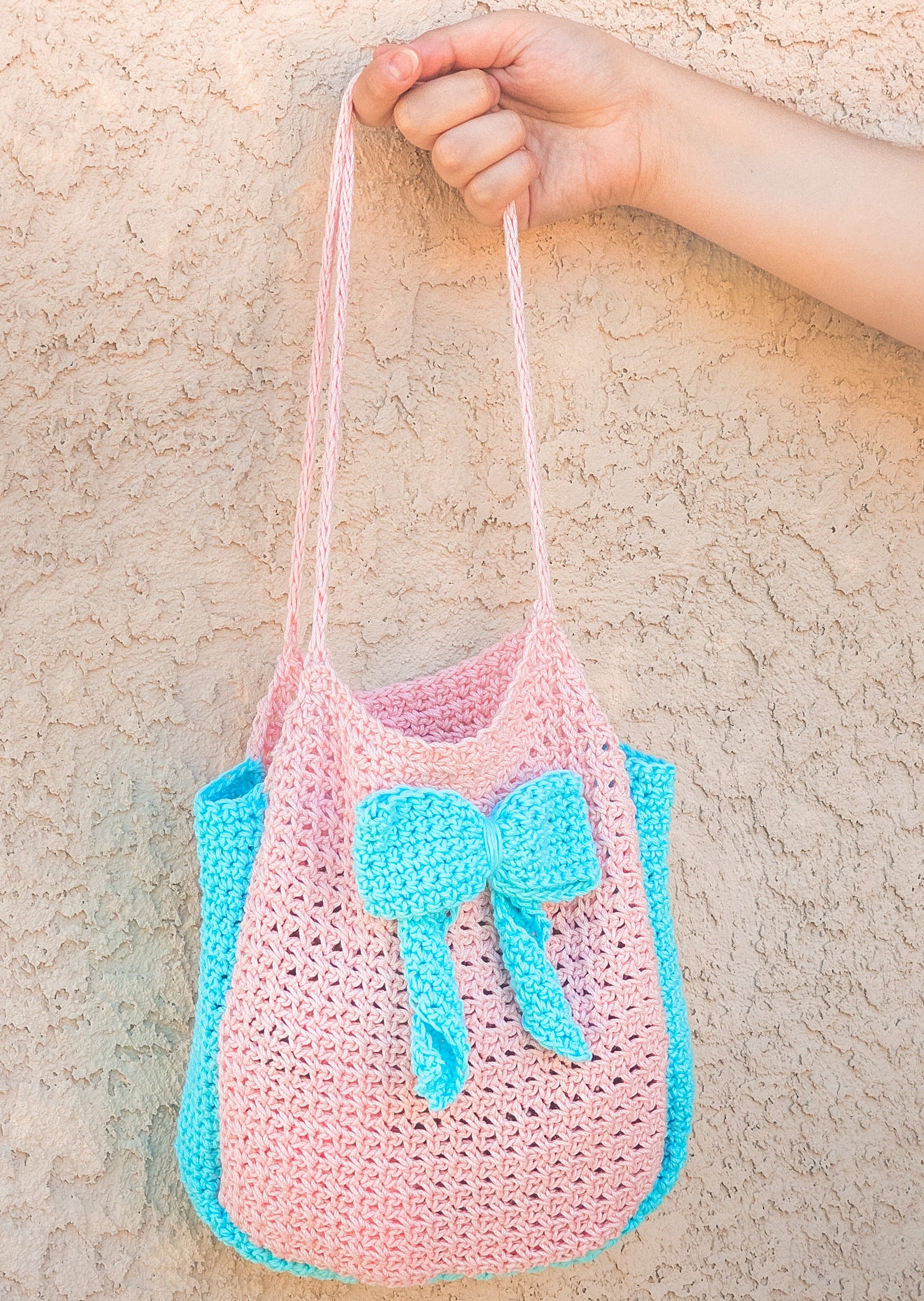 - One size. Omit a multiple of 2 sts for a smaller bag.