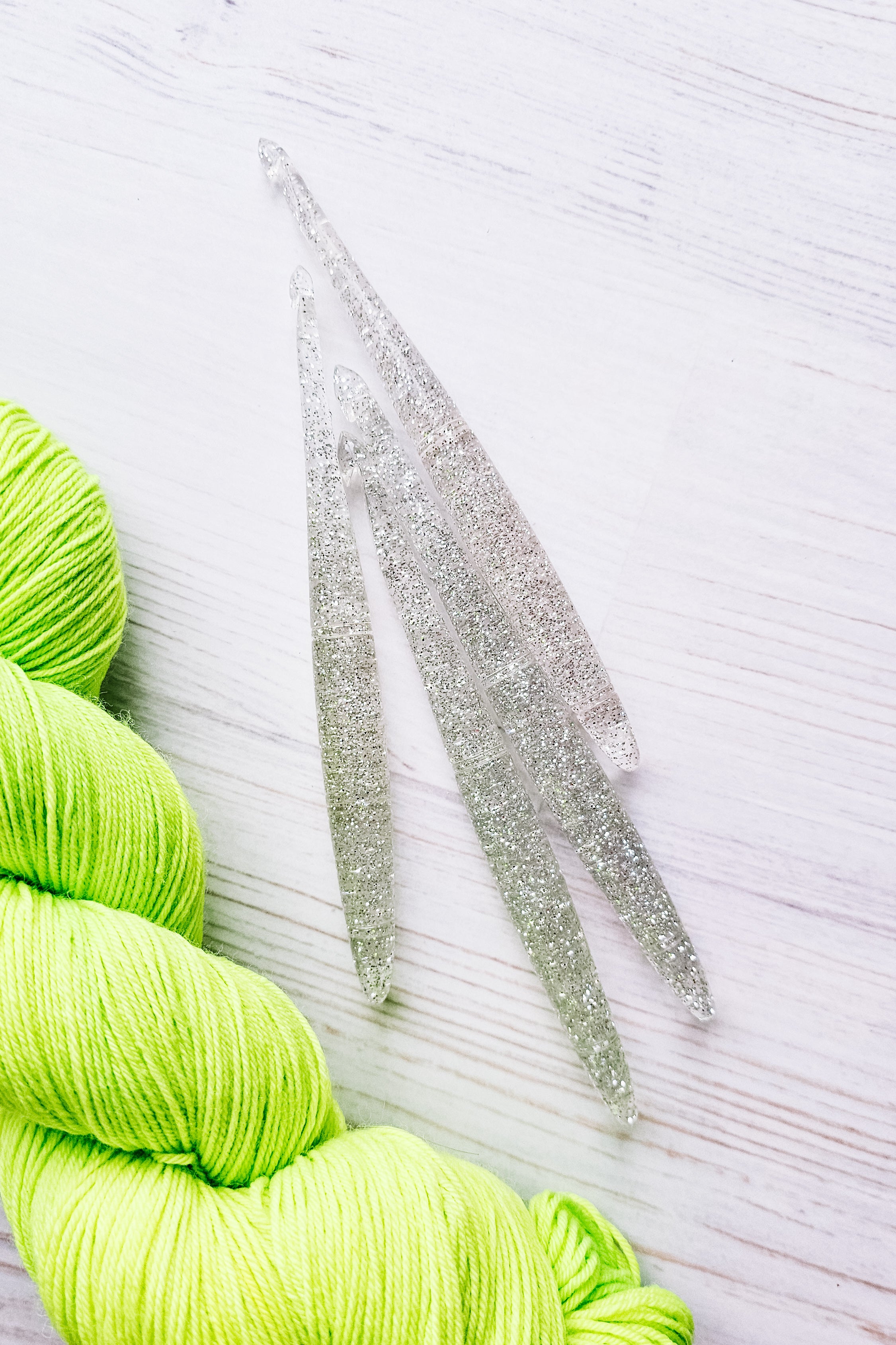 This crochet hook is a work of art, designed to reflect the mesmerizing and luxurious nature of diamonds. The hook glistens with a transparent, crystal-clear quality, emulating the dazzling brilliance for which diamonds are renowned.