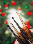 Celebrate with us as Ophire Co. turns 3! In celebration of our birthday, we present the Dahlia Crochet Hook, a striking limited edition crochet hook designed with dark moody vibes for the Fall season. This exquisite resin hook features a deep dark plum shimmer, nearly black, with radiant gold glitter throughout, reminiscent of the rich elegance of a dark blooming dahlia at twilight. Each hook is a unique work of art, blending luxury with bold sophistication.