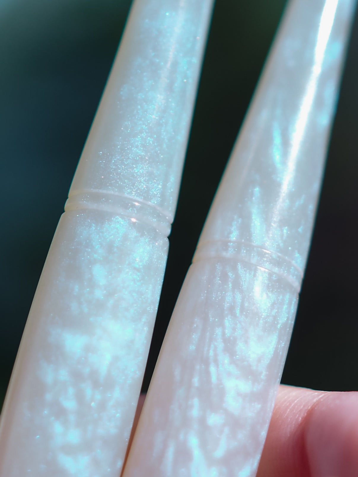 The hook is a celebration of the soft and dreamy hues of white opal, a symbol of purity and clarity. Specks of tranquil blue highlights dance across the surface like moonlight on water, creating a mesmerizing play of colors.