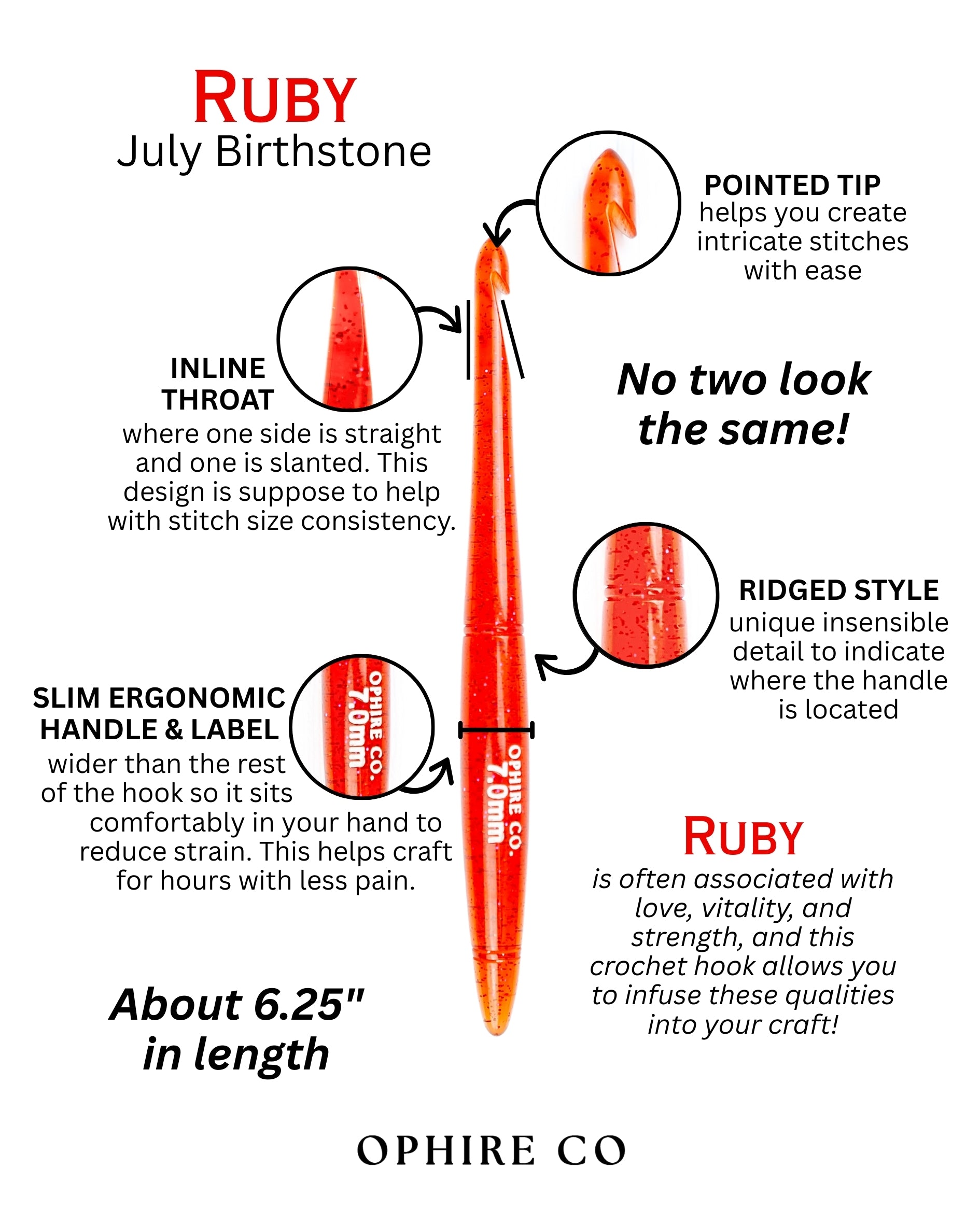 Ruby July Birthstone Crochet Hook