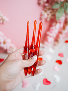 Ruby Birthstone Crochet Hook, a crochet tool that embodies the vibrant and passionate beauty of the July birthstone, the ruby.