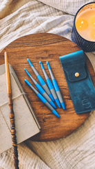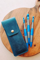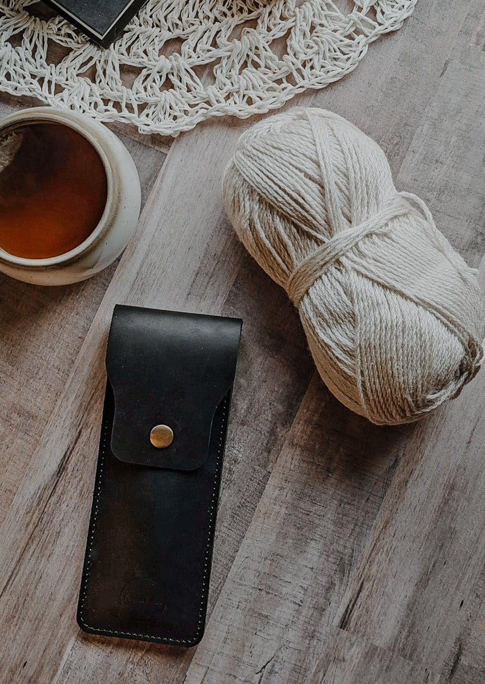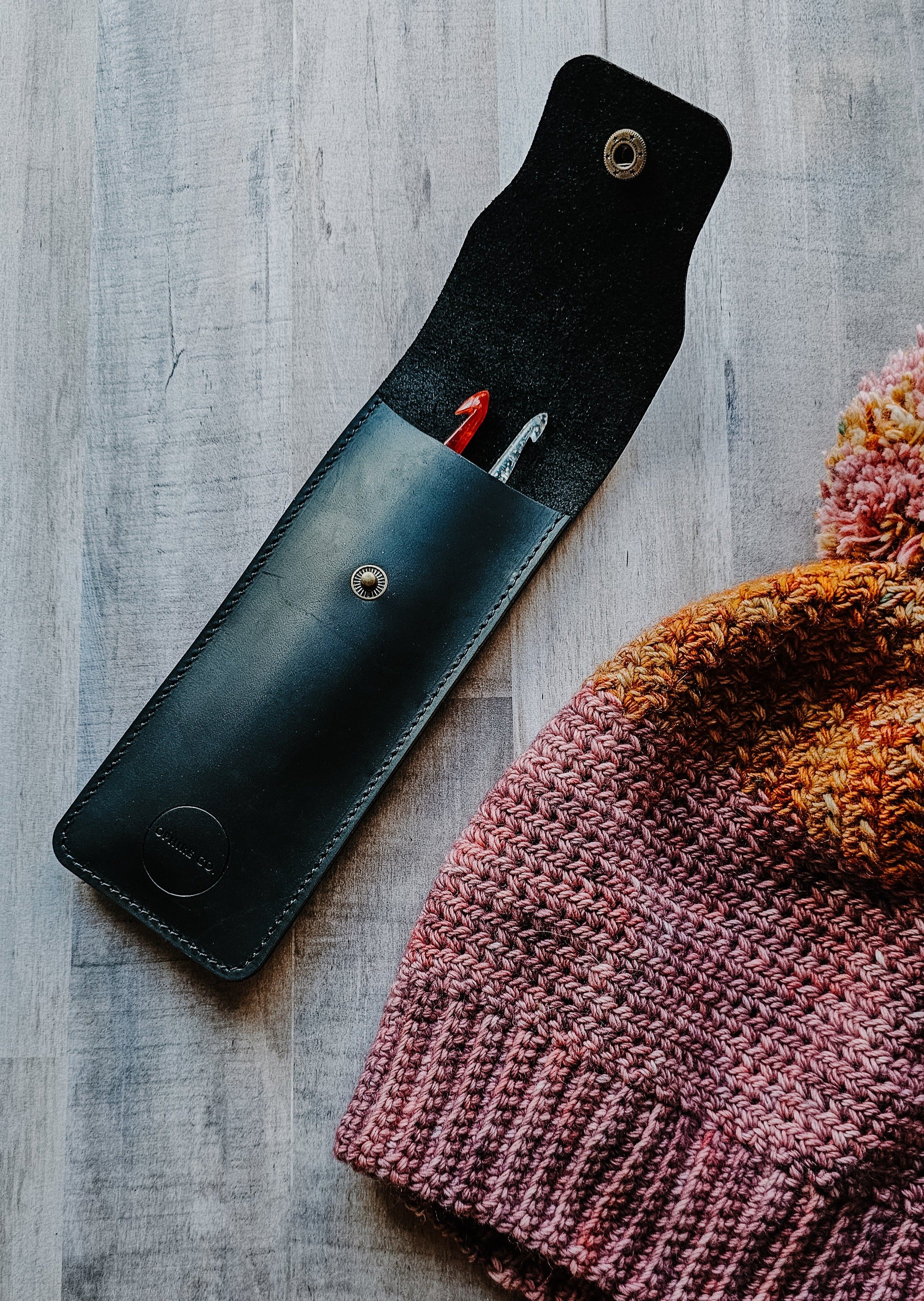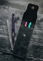 Two hook travel pouch made with genuine leather. Keep your hooks safe when you're on the go. As of January 2024 we've updated our design! The leather pouch now measures 7" long by 2.75" wide which will fit up to 2 Ophire Co. crochet hooks. TSA approved to carry crochet hooks and small scissors.