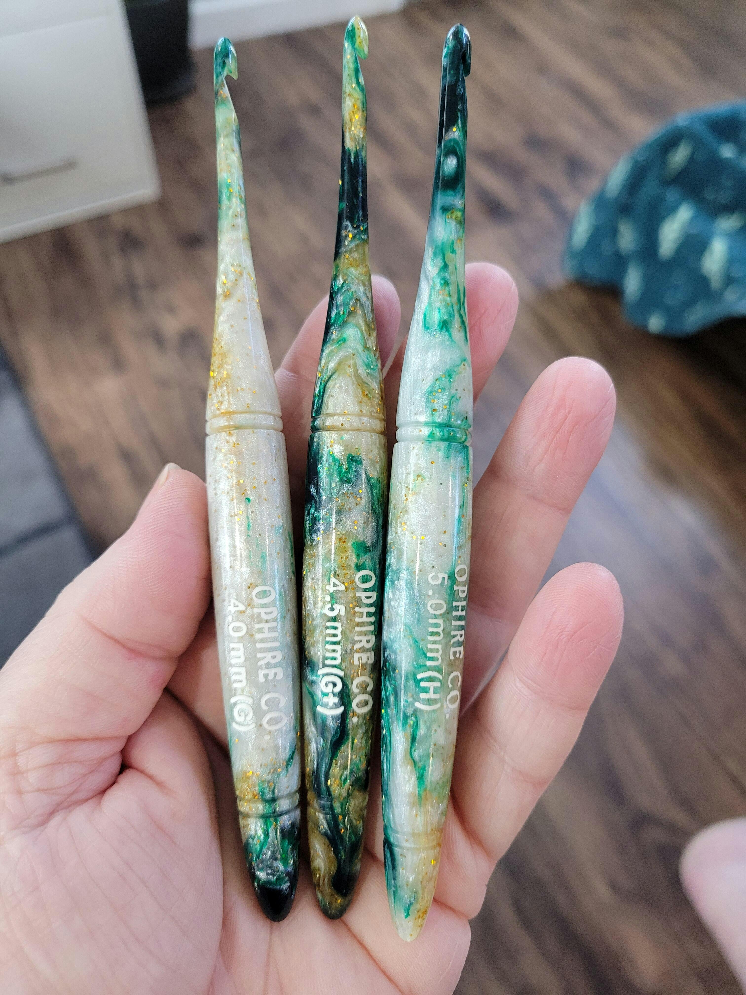 Each hook is uniquely crafted, ensuring no two are alike, just as no two magnolia flowers are ever the same. The swirls of green and the golden accents are a beautiful tribute to the changing of the seasons, bringing a fresh, nature-inspired energy to your home. Whether you're using it for crocheting coats, bags, or decorative accessories, this hook is sure to add a touch of springtime charm and individuality to any collection!