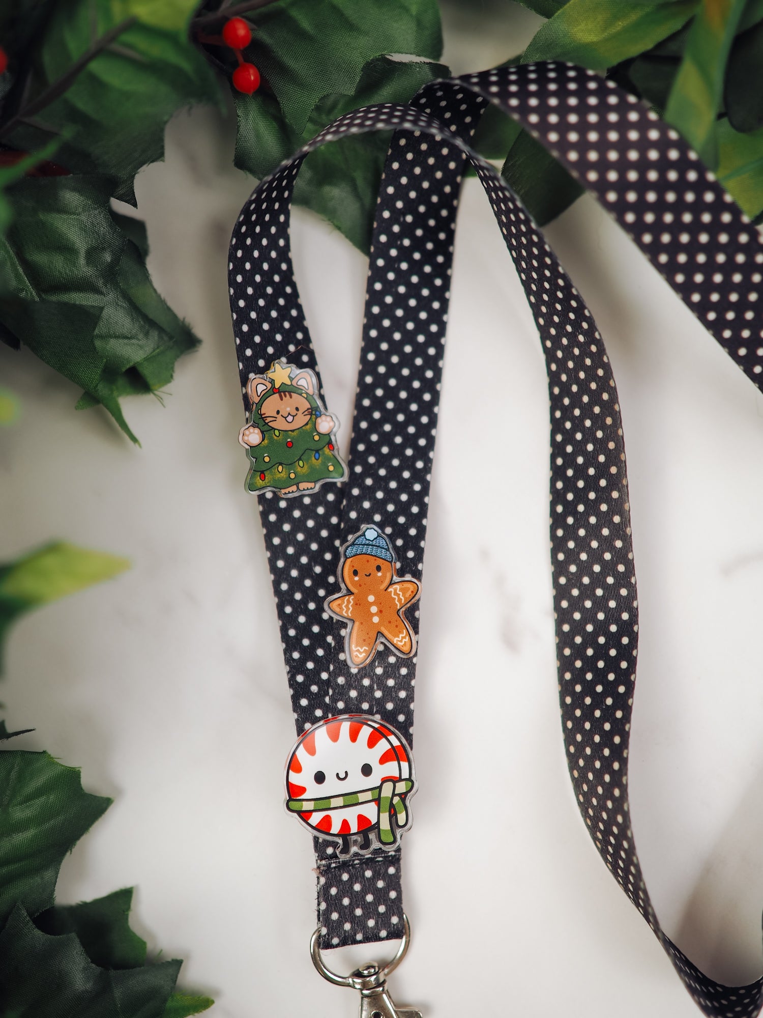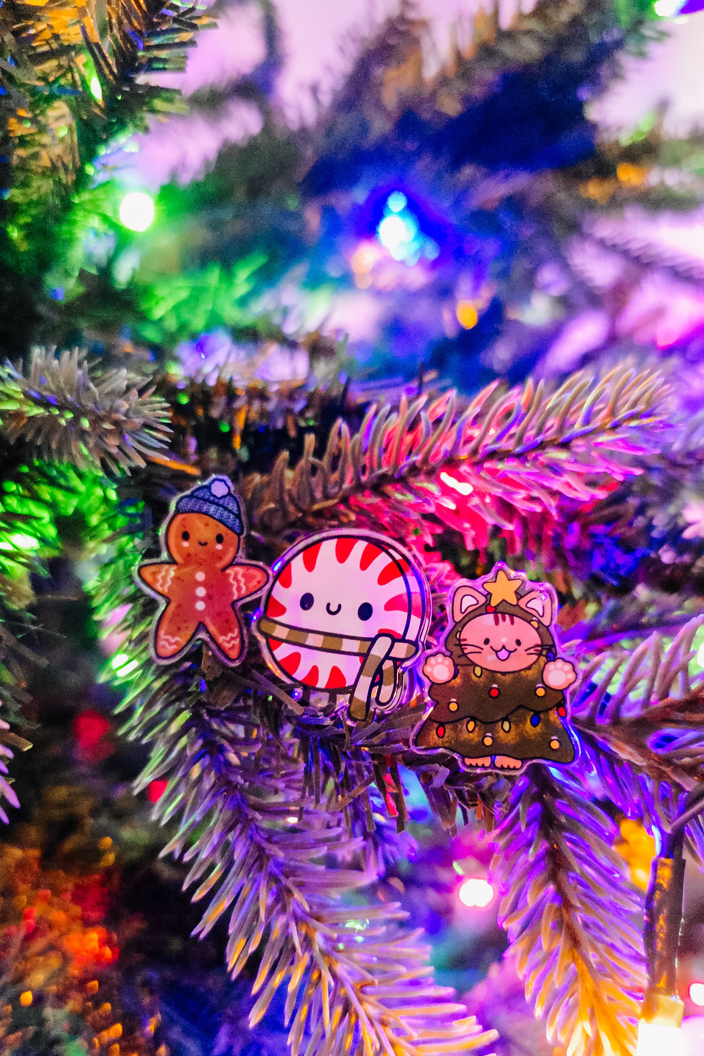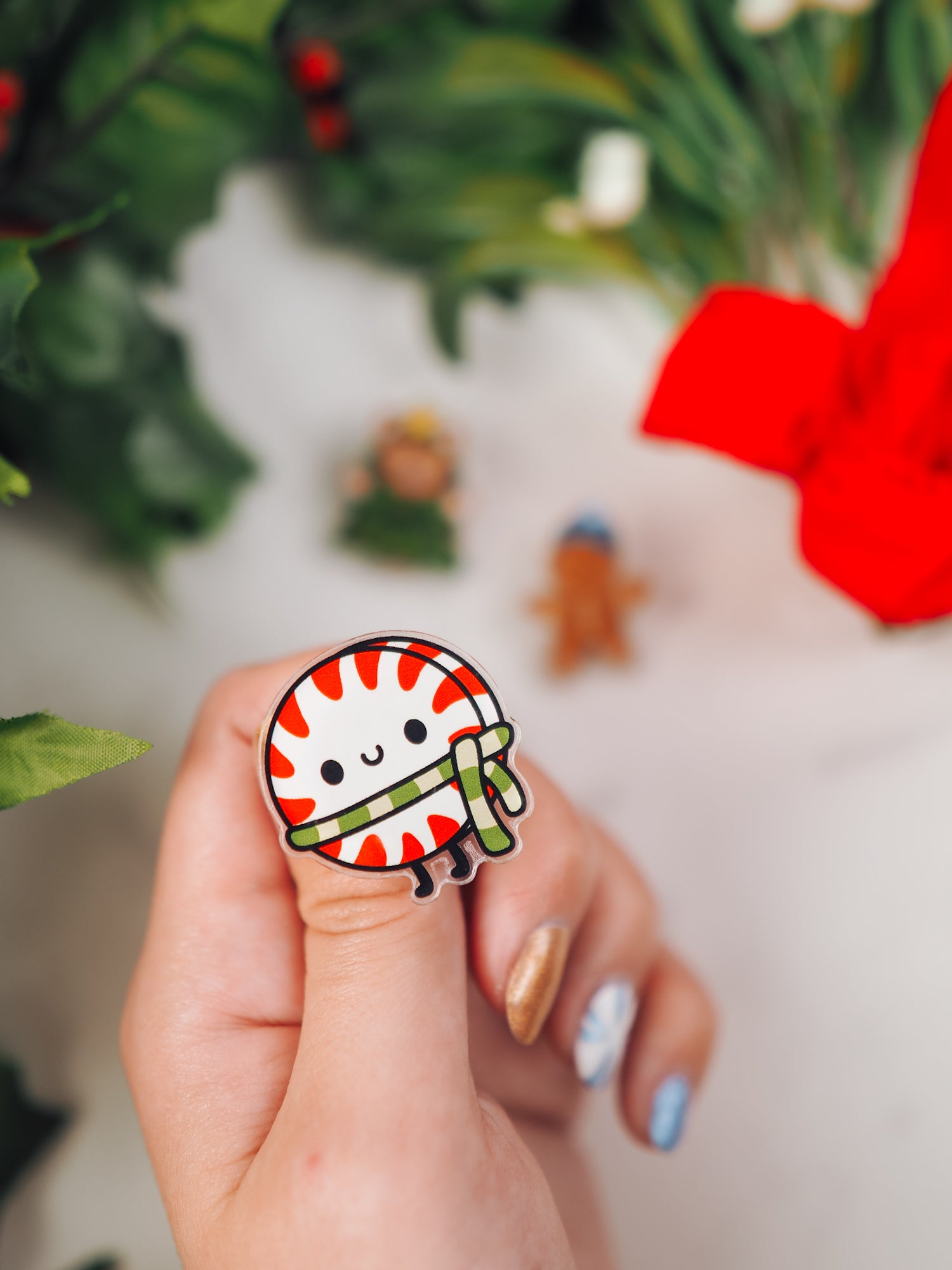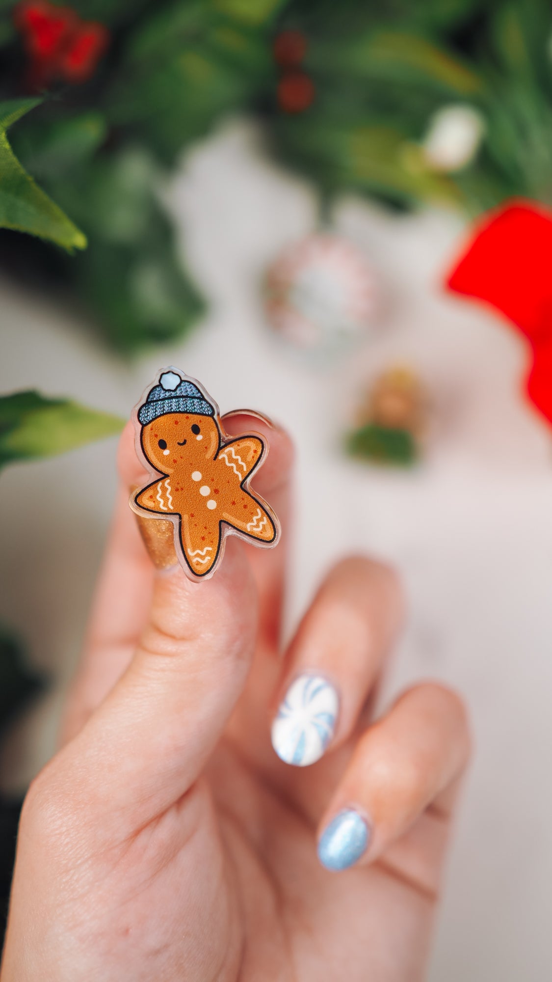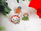 Celebrate the magic of the holiday season with this festive collection of Christmas themed pins! Featuring three cheerful designs, a classic peppermint swirl, an adorable gingerbread man, and a mischievous cat dressed up as a twinkling Christmas tree, each pin captures the warmth and whimsy of wintertime crafting. Perfect for adorning your project bag, jean jacket, or hook pouch, these pins bring a merry pop of color and charm to all your holiday makes.