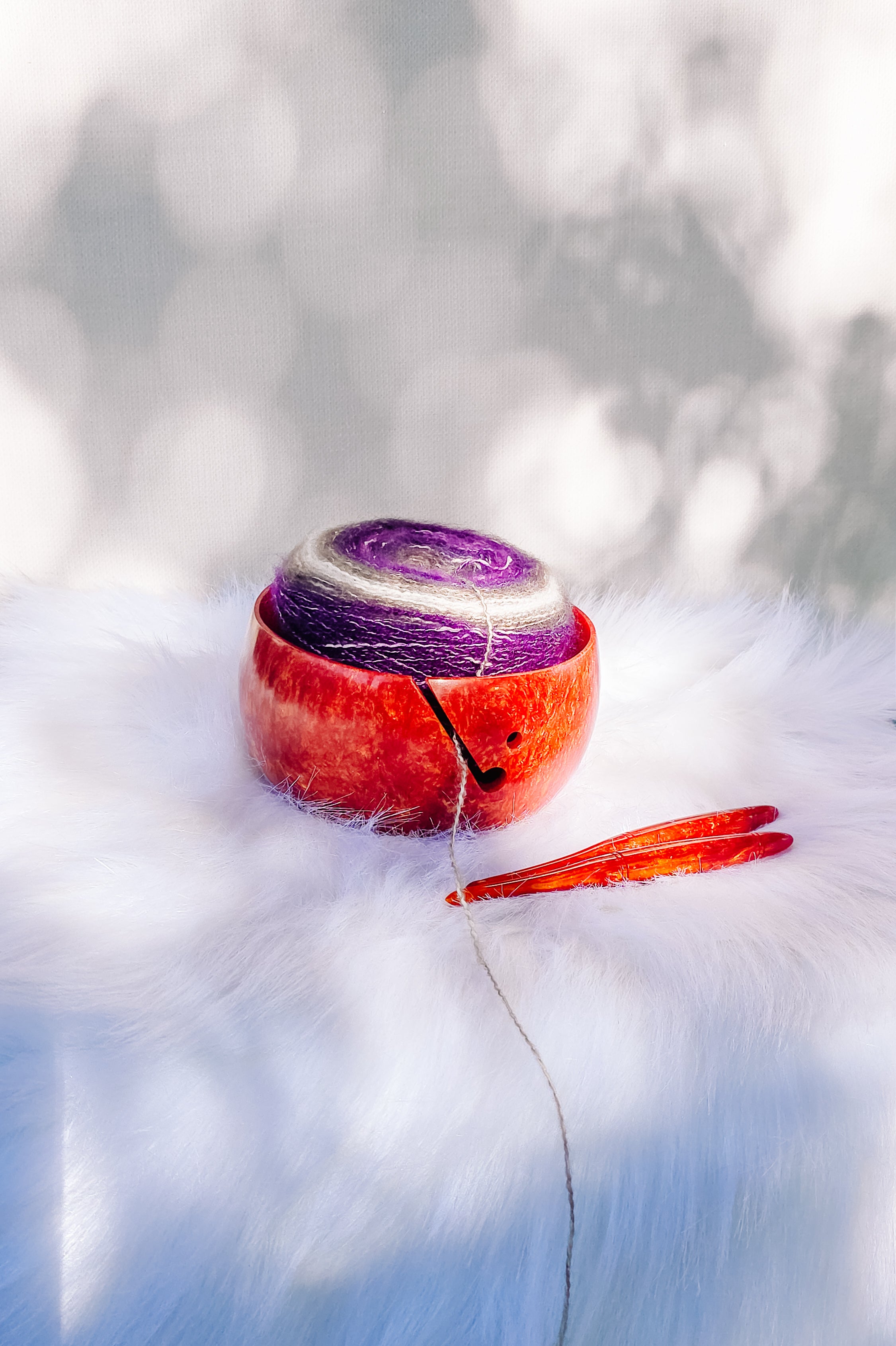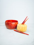Warm, radiant, and irresistibly cozy, our Honeycrisp Yarn Bowl is a true showstopper. Featuring a rich shimmery red base with swirls of golden shimmer throughout, this bowl catches the light beautifully from every angle. Inspired by the glow of fall apples and golden harvest tones, it adds a touch of warmth and elegance to any stitching space. Perfect for keeping your yarn tangle free while bringing a little extra sparkle to your crocheting.