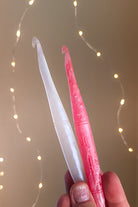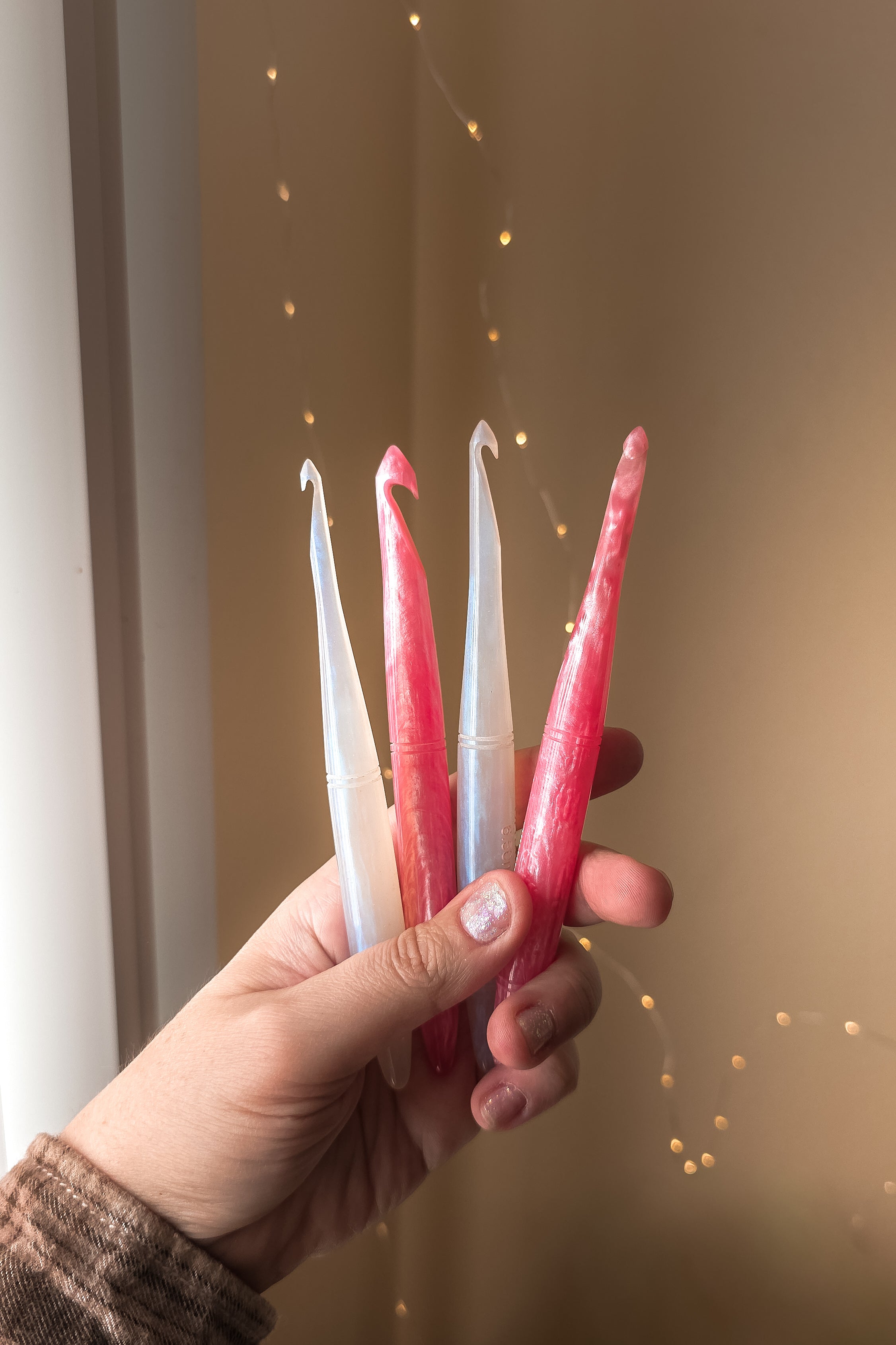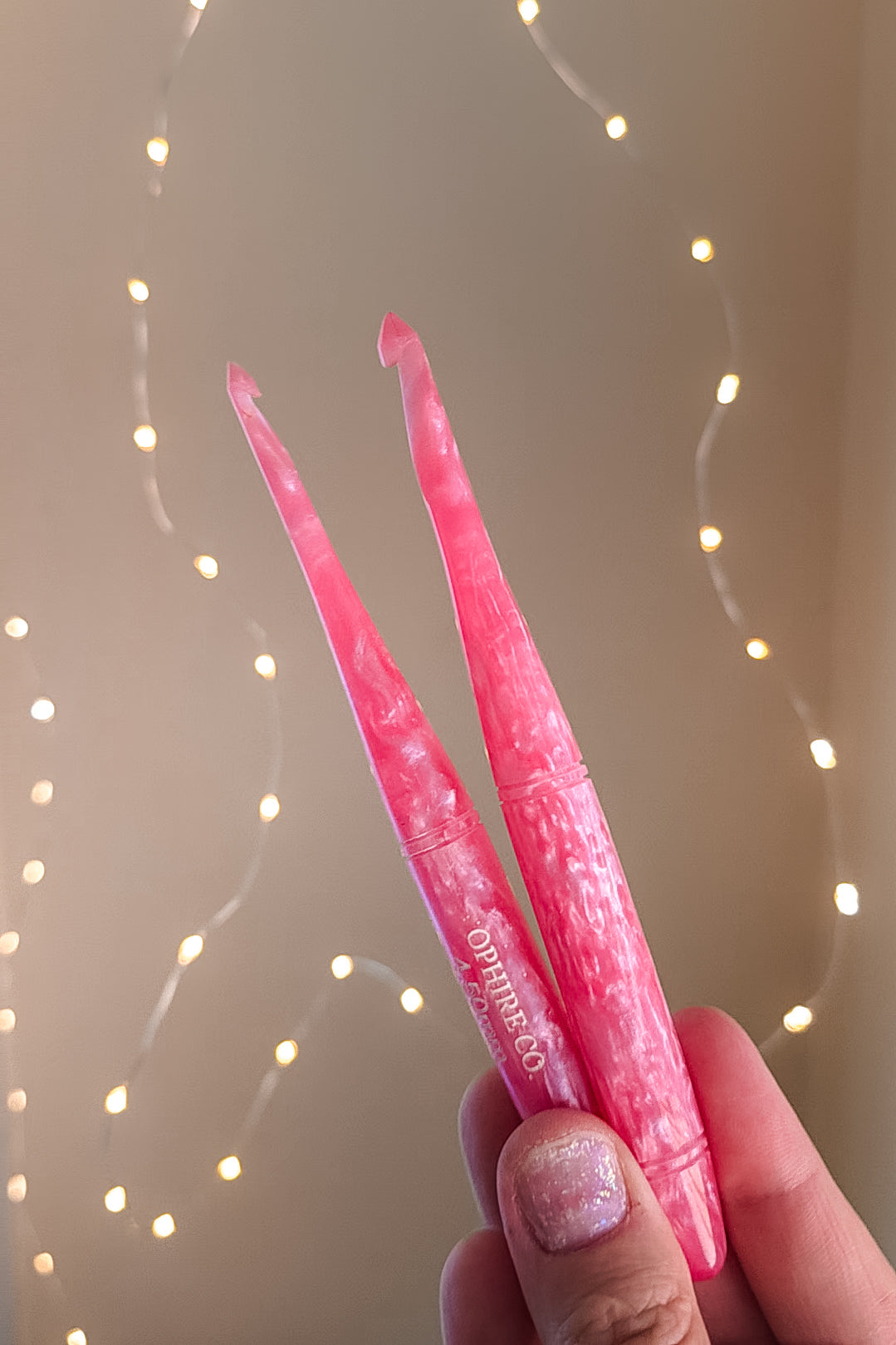These limited quantity hooks are perfect for crocheters looking for a budget friendly tool that still gets the job done. Each hook features our Opal or Pink Tourmaline colors but includes cosmetic imperfections such as small scratches, pits, misprints, or other cosmetic quirks.