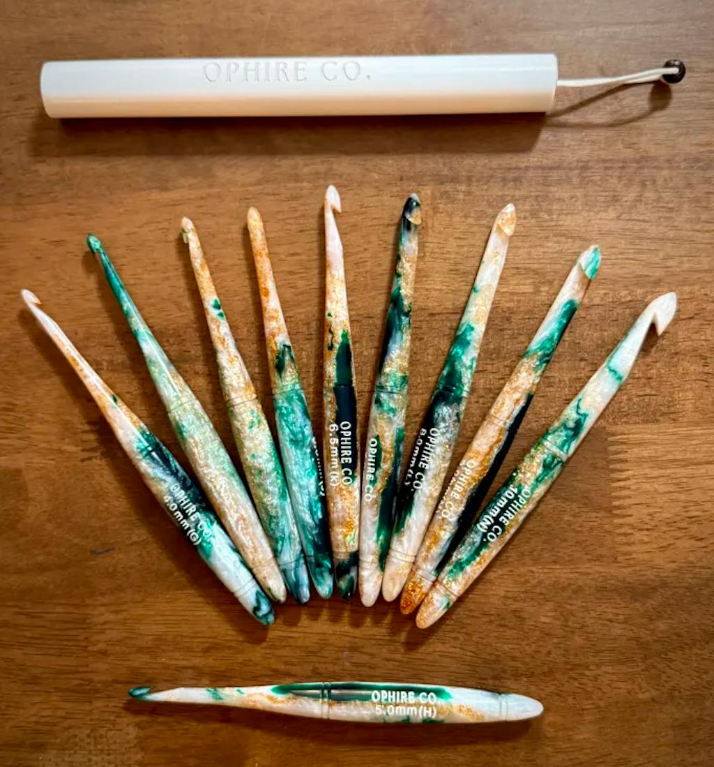 Each hook is uniquely crafted, ensuring no two are alike, just as no two magnolia flowers are ever the same. The swirls of green and the golden accents are a beautiful tribute to the changing of the seasons, bringing a fresh, nature-inspired energy to your home. Whether you're using it for crocheting coats, bags, or decorative accessories, this hook is sure to add a touch of springtime charm and individuality to any collection!