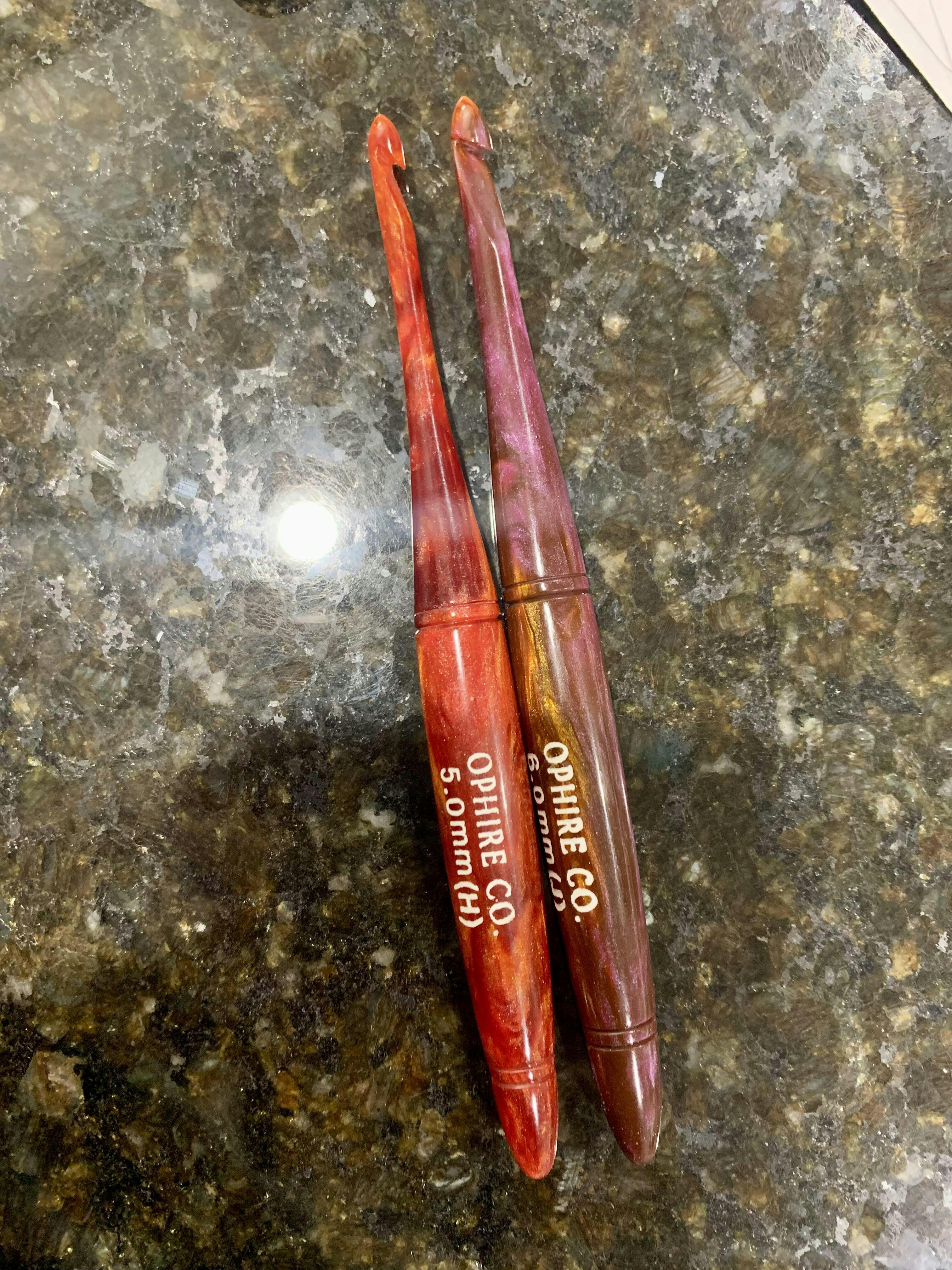 Smooth, ergonomic, and radiant in every stitch, this limited edition hook is as functional as it is mesmerizing. Add a little ember glow to your hook stand this season.