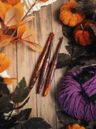 Ignite your creativity with Mystic Ember a spellbinding blend of deep amethyst tones kissed with fiery golden shimmer swirls. This enchanting hook captures the magic of twilight flames, making it the perfect companion for your fall and Halloween projects. Whether you’re crocheting cozy autumn blankets or crafting spooky season makes, Mystic Ember brings both elegance and a spark of mystery to your collection.