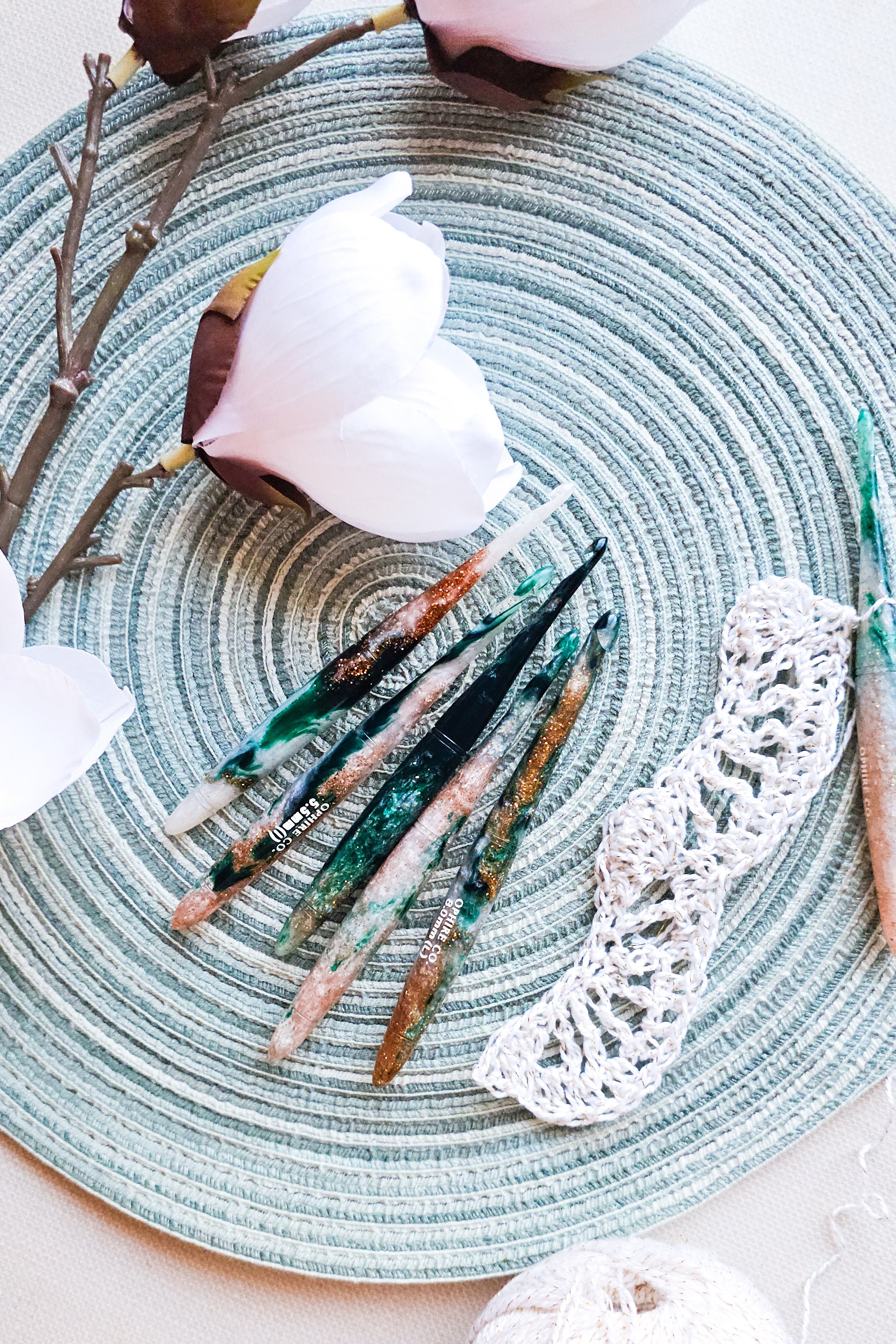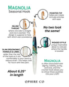 Each hook is uniquely crafted, ensuring no two are alike, just as no two magnolia flowers are ever the same. The swirls of green and the golden accents are a beautiful tribute to the changing of the seasons, bringing a fresh, nature-inspired energy to your home. Whether you're using it for crocheting coats, bags, or decorative accessories, this hook is sure to add a touch of springtime charm and individuality to any collection!